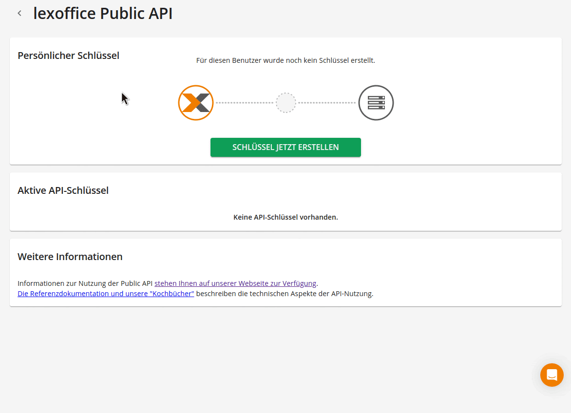 Erstellen Sie einen "Schlüssel" unter Lexoffice API und teilen Sie ihn dem IMPARGO-Kundendienstteam mit.